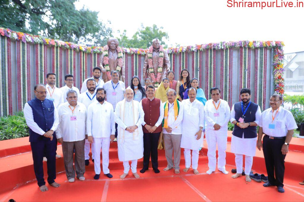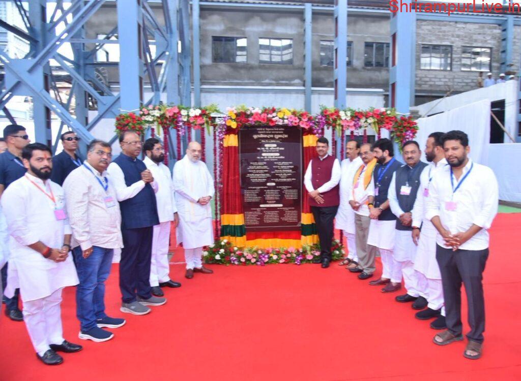 सहकार चळवळीचे जनक पद्मश्री डॉ.विठ्ठलराव विखे पाटील आणि लोकनेते पद्मभूषण डॉ.बाळासाहेब विखे पाटील यांच्या पुर्णाकृती पुतळ्याचे अनावरण सहकार मंत्री अमित शाह यांच्या हस्ते करण्यात आले. तत्पुर्वी प्रवरानगर येथील डॉ.विखे पाटील सहकारी साखर कारखान्याच्या विस्तारीत प्रकल्पाच्या कामाचा शुभारंभ झाला.मुख्यमंत्री देवेंद्र फडणवीस यांच्या अध्यक्षतेखाली संपन्न झालेल्या या कार्यक्रमास उपमुख्यमंत्री एकनाथ शिंदे, उपमुख्यमंत्री अजित पवार, केंद्रीय सहकार राज्यमंत्री मुरलीधर मोहोळ, भाजपाचे प्रदेशाध्यक्ष आ.रविंद्र चव्हाण, महसूल मंत्री चंद्रशेखर बावनकुळे, पर्यावरण मंत्री पंकजा मुंडे, सहकार मंत्री बाबासाहेब पाटील, जलसंपदा मंत्री गिरीष महाजन यांच्यासह जिल्ह्यातील महायुतीचे सर्व आमदार आणि सहकार चळवळीतील सर्व कार्यकर्ते शेतकरी मोठ्या संख्येने उपस्थित होते.आपल्या भाषणात केंद्रीय सहकार मंत्री अमित शाह यांनी राज्यात झालेल्या अतिवृष्टीचा उल्लेख करुन शाह म्हणाले की, ६० लाख हेक्टर क्षेत्रावरील शेती पीकांचे नुकसान झाल्याची माहीती आमच्याकडे आली आहे. यापुर्वी ३ हजार १३८ कोटी रुपयांची मदत करण्यात आली होती. यंदा झालेल्या अतिवृष्ठीतही मदतीचा प्रस्ताव राज्य सरकारने आमच्याकडे पाठवावा, आम्ही मदत करायला तयार आहोत असे आश्वासन देवून राज्य सरकारने शेतक-यांना या संकटात २ हजार २१५ कोटी रुपयांची मदत आणि ३५ कि.लो धान्य देण्याचा निर्णय घेतला आहे, कर्जाची वसूलीही थांबविली आहे. मुख्यमंत्री आणि दोन्हीही उपमुख्यमंत्री म्हणजे त्रिमुर्ती आहेत, ते बनिया नाहीत तर पक्के आहेत. मला आज लोणीत बोलावून शेतक-यांच्या मदतीचा शब्द घेतला असल्याचे त्यांनी सांगितले.