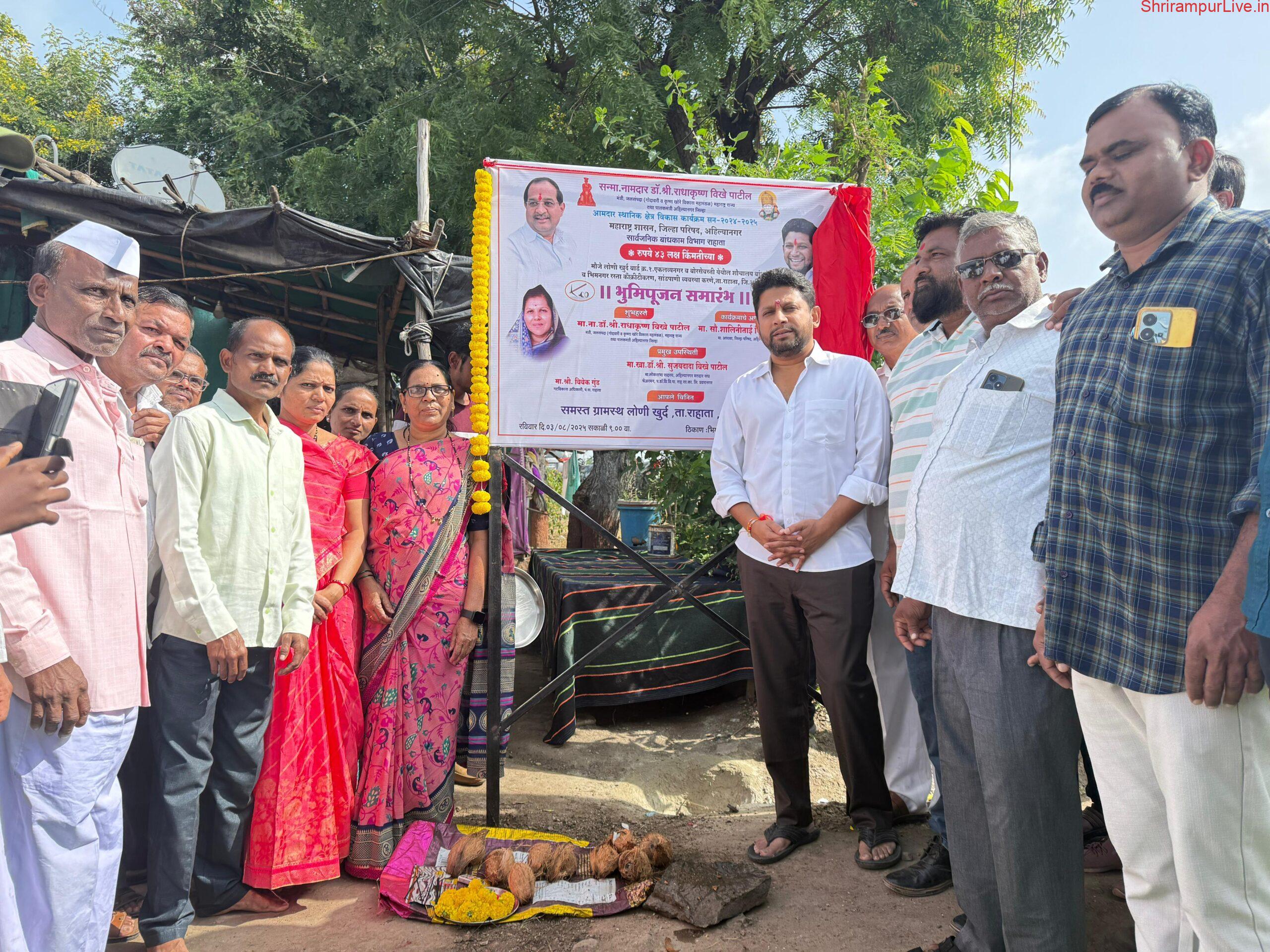लोणी खुर्द येथे घरकुलासाठी ४७ गुंठे जागेचा प्रस्ताव शासनाकडे- मा.खा.डॉ.सुजय विखे पाटील; ८ कोटी रुपयांच्या विकासकामांचे भूमिपूजन उत्साहात
