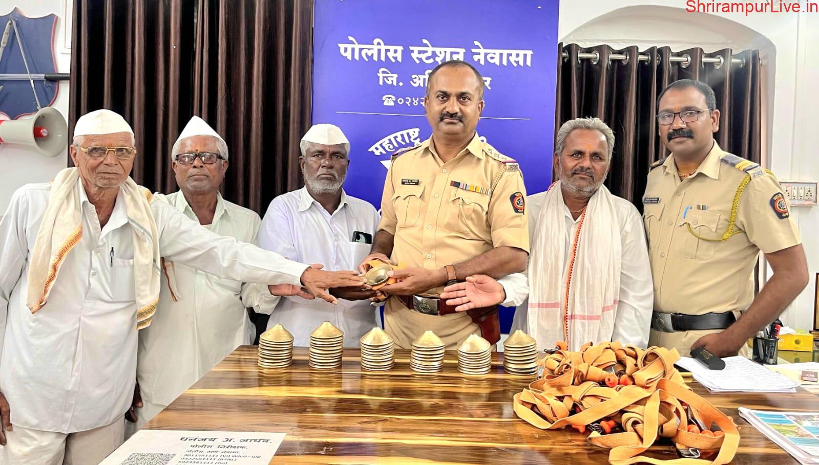 सिद्धेश्वर मंदिरातून चोरीस गेलेल्या भजनी मंडळाचे २८ टाळ परत;नेवासा पोलीसांनी विधिवत केले परत