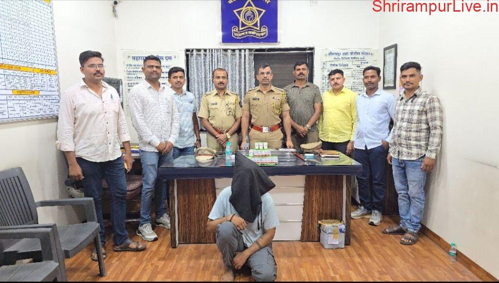 याबाबत पोलिसांनी दिलेली माहिती अशी की, 27/08/2025 रोजी पोलीस निरीक्षक नितीन देशमुख यांना गुप्त बातमीदारामार्फत महिती मिळाली की, डी.टी.डी.सी. कुरिअर, जिजामाता चौक, वॉर्ड नं.03, श्रीरामपूर येथे परवेज शेख या तरुणाने कुरिअरव्दारे नशेचे औषध व इंजेक्शन विक्री करण्याकरीता मागवले असुन तो दोन वाजेच्या सुमारास ते घेण्याकरीता येणार आहे.पोलीस निरीक्षक नितीन देशमुख यांनी सदरची माहिती उपविभागीय पोलीस अधिकारी जयदत्त भवर यांना कळवुन त्यांच्या परवानगीने तसेच औषध निरीक्षक सोमनाथ बा. मुळे यांच्याशी संर्पक करुन तात्काळ पोलीस पथकास जिजामाता चौकामध्ये सापळा लावण्यास सांगितला. सदर तरुण त्या ठिकाणी येताच खात्री झाल्यांनातर तपास पथकाने डी.टी.डी.सी. कुरिअर, जिजामाता चौक, वॉर्ड नं.03, श्रीरामपूर येथे तो ते पार्सल ताब्यात घेत असतानाच त्याला ताब्यात घेतले. त्याला त्याचे नाव व पत्ता विचारले असता त्याने त्याचे नाव परवेज जमीर शेख, वय 23 वर्षे, रा. आयडीबीआय बॅक समोर, नेवासा रोड वॉर्ड नं.06, श्रीरामपूर असे असल्याचे सांगितले. त्याच्या ताब्यातुन 16700 रु. किंमतीचे मेफेंटर्मिन औषधाच्या 10 एम.एल.च्या 50 बॉटल असा मुद्देमाल जप्त करण्यात आलाआहे. या तरुणा विरुध्द श्रीरामपूर शहर पोलीस स्टेशन येथे गुन्हा दाखल करण्यात आला आहे.सदरची कारवाई पोलीस अधीक्षक सोमनाथ घार्गे,अप्पर पोलीस अधीक्षक सोमनाथ वाकचौरे,उपविभागीय पोलीस अधिकारी जयदत्त भवर यांच्या मार्गदर्शनाखाली पोलीस निरीक्षक नितीन देशमुख, यांच्याकडील तपास पथकातील पोलीस उपनिरीक्षक समाधान सोळंके, पोलीस उपनिरीक्षक दिपक मेढे, प्रशि. पोलीस उपनिरीक्षक अजित धाराव, पोकों संपत बडे, पोकॉ अमोल पडोळे, पोकॉ सचिन दुकळे, पोकॉ संभाजी खरात, पोकों अजित पटारे, पोकॉ राहुल पौळ, पोकों आजिनाथ आंधळे, मपोकों मिरा सरग तसेच औषध निरीक्षक सोमनाथ मुळे यांनी केली असुन दाखल गुन्हयाचा अधिक तपास श्रीरामपूर शहर पोलीस करीत आहेत.