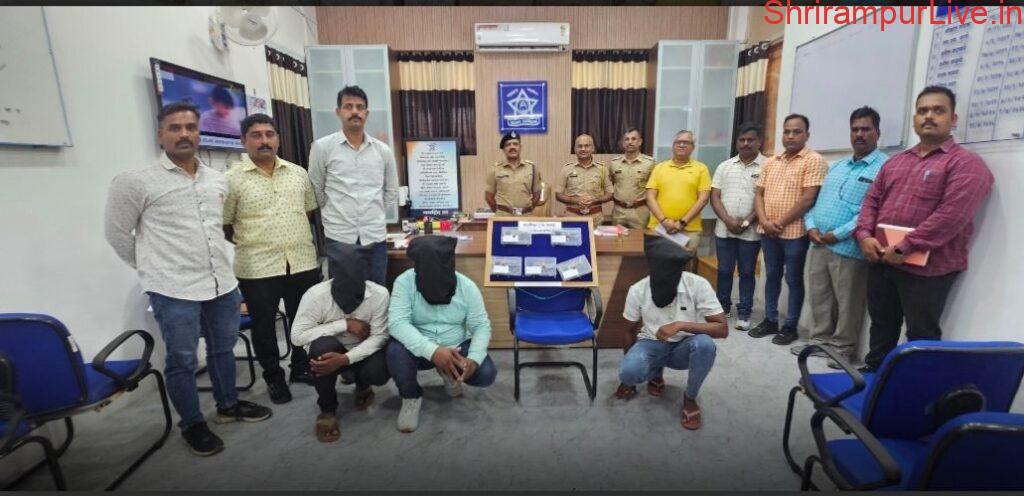 याबाबत सविस्तर माहिती अशी की, दि.२ रोजी स्थानिक गुन्हे शाखेच्या पथकाने गुप्त माहितीच्या आधारे श्रीरामपूर शहर पोलीस ठाणे हद्दीत छापा टाकून तीन संशयितांना पकडले. अक्षय उर्फ भावड्या संजय माळी, (वय 23 वर्षे, रा. फत्तेपुर, ता. नेवासा, जि. अहिल्यानगर) अजय शिवाजी मगर, (वय 25 वर्षे, रा. नांदुर शिखरी, ता. नेवासा, जि. अहिल्यानगर) योगेश मच्छिंद्र निकम, ( वय 35 वर्षे, रा. वडगांवगुप्ता, ता. नगर, जि. अहिल्यानगर) अशी पकडलेल्या आरोपींची नावे आहेत.