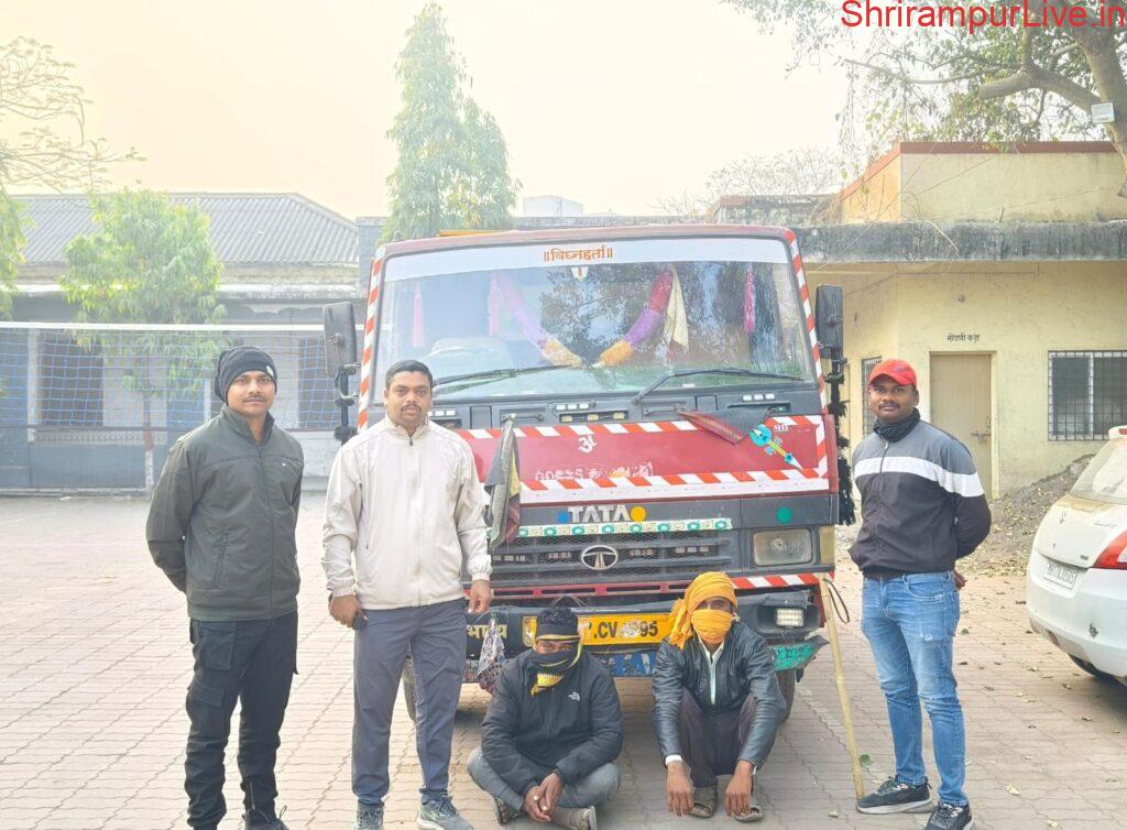 अपर पोलीस अधीक्षक सोमनाथ वाघचौरे यांना गुप्त बातमीदारामार्फत मिळालेल्या माहितीनुसार दि. 24 रोजी पोना अनिल काशिनाथ शेंगाळे, पोकॉ सचिन दगडु शेळके, पोकॉ अनिकेत आण्णासाहेब बर्डे,पोहेकॉ आयुब बाबु शेख यांच्या पथकाने माळवाडगावकडे जाणाऱ्या रोडलगत असलेल्या अडबंगनाथ संस्थान कमानीसमोर येथे सापळा लावला.सकाळी 6.30 वा. चे सुमारास आम्हाला भामाठाणच्या दिशेने एक टिप्पर येताना दिसला. आम्ही सदर वाहन चालकास थांबविण्याचा ईशारा केला असता त्याने पोलीस पथकास पाहून सदर टिप्पर रोडच्या थोड्या अंतरापर्यंत नेण्याचा प्रयत्न केला. टिप्पर क्र MH 17 CV 1095 याच्यामध्ये वाळू मिळुन आली. दोघा जणांकडे अधिक चौकशी केली असता त्यांनी त्यांचे नाव सुनिल छगन रजपुत वय 31 वर्षे रा. वाहेगाव मांजरी ता. गंगापुर जि. छ. संभाजीनगर व सागर भाऊसाहेब आसणे वय 29 वर्षे रा.माळवाडगाव ता. श्रीरामपुर असे सांगीतले.तसेच वाहन मालकाचे नाव  ज्ञानेश्वर देविदास बनसोडे रा.भामाठाण ता. श्रीरामपुर असे असल्याचे सांगीतले. त्याच्या सांगण्यानुसार आम्ही वाळु उपसा करत असल्याचे त्यांनी सांगितले.त्यानंतर
