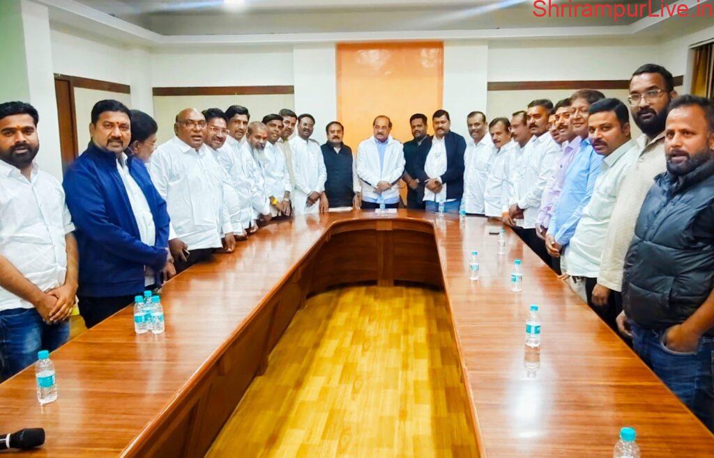 नगरपरिषेदेच्या पाणी पुरवठा योजनेच्या कामामुळे दैनंदिन पाणीपुरवठ्यात आलेली समस्या,कॅनॉल लाईनच्या अतिक्रमणधारकांना आलेल्या नोटीस यांसह विविध महत्वपूर्ण विषयांवर तोडगा काढावा म्हणून जलसंपदा मंत्री तथा पालकमंत्री ना.राधाकृष्ण विखे पाटील यांची श्रीरामपूर शहरातील भाजप नेते व नगरसेवकांनी भेट घेतली.याबाबत सविस्तर माहिती अशी की, श्रीरामपूर नगरपरिषदेत भाजप पक्षाचे ११ नगरसेवक विजयी झाल्यानंतर शहरातील विकासकामांना गती मिळावी, दररोज होणार पाणीपुरवठा सुरळीत राहावा, शहरातील कॅनोल भूमिगत करून त्यावर अतिक्रमणधारकांना गाळे मिळावे यांसह विविध मागण्यांसाठी भाजपच्या शिष्टमंडळाने पालकमंत्री विखे पाटील यांची नुकतीच भेट घेतली. यावेळी जिल्हाध्यक्ष नितीन दिनकर, उपाध्यक्ष दीपक पटारे, माजी नगराध्यक्ष संजय फंड, शहराध्यक्ष जितेंद्र छाजेड, केतन खोरे, रवी पाटील, नगरसेवक दीपक चव्हाण, श्रीनिवास बिहाणी, अर्जुन दाभाडे, संजय गांगड, आशिष धनवटे, शशांक रासकर, संजय छल्लारे, सिद्धार्थ फंड, मनोज लबडे, बंडूकुमार शिंदे संदीप चव्हाण, मारुती बिंगले, विजय पवार, अमोल शेटे, राजू यादव आदींसह भाजप पदाधिकारी उपस्थित होते.