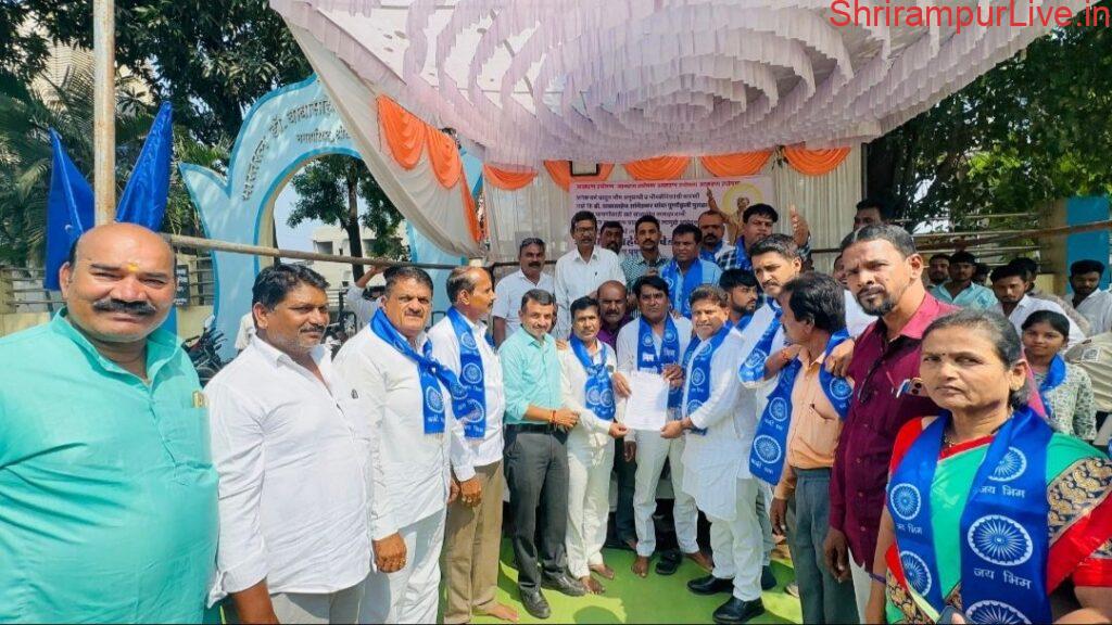 येथील भारतरत्न डॉ. बाबासाहेब आंबेडकर यांच्या पूर्णकृती पुतळा बसविण्यासाठी आवश्यक ते सर्व परवानगी व कागदपत्राची पूर्तता करून सुद्धा काम चालू होत नसल्याने पुतळ्याचे काम चालू व्हावे यासाठी भीमशक्ती संघटनेचे जिल्हाध्यक्ष संदीप मगर, सुनिल मगर,आंबादास निकाळजे, सुनील संसारे,महेंद्र त्रिभुवन,मचिद ढोकणे,अनिल माघाडे, सचिन राठोड, सोमनाथ पटाईत यांच्यासह अनेक भीमसैनिकांनी सुरू केलेल्या आमरण उपोषणाला यश आले आहे.लवकरच श्रीरामपूर येथील डॉक्टर बाबासाहेब आंबेडकर यांचा पूर्णकृती पुतळा साकार होणार आहे.याकरिता प्रशासकीय बाबी तातडीने पूर्ण करून कामाला गती देण्याच्या सूचना आ. हेमंत ओगले यांनी नगरपरिषदेचे मुख्याधिकारी मच्छिंद्र घोलप यांना केल्या आहेत. भारतरत्न महामानव डॉ.बाबासाहेब आंबेडकर यांचा पूर्णकृती पुतळा हा तालुक्याचे माजी आमदार स्वर्गीय जयंतराव ससाणे यांच्या दूरदृष्टीतून तयार झालेला आहे. मात्र काही तांत्रिक बाबींमुळे स्मारकाचे काम थांबले होते. विधानसभेच्या निकालानंतर लगेचच आमदार हेमंत ओगले व उपनगराध्यक्ष करण ससाणे यांनी प्रशासकीय पातळीवर पाठपुरावा करून आवश्यकता लागणाऱ्या सर्व विभागांच्या परवानग्या नगरपरिषद कार्यालयाला मिळवून दिल्या आहेत. आता फक्त प्रशासकीय कामकाज बाकी असून ते तातडीने मार्गी लावून सदर भव्य दिव्य स्मारकाचे काम तातडीने सुरू करावे अशा सूचना आमदार ओगले यांनी नगरपरिषदेच्या प्रशासनाला केल्या आहेत.यावेळी उपनगराध्यक्ष करण ससाने, जिल्हा काँग्रेसचे कार्य अध्यक्ष सचिन गुजर, माजी सभापती बाबासाहेब दिघे, मुख्याधिकारी मच्छिंद्र घोलप यांच्यासह प्रशांत भोसले रितेश एडके सनी बारसे बाळू आवारे विजया बारसे रोहिणी बनसोडे कुणाल वाहुळ तुषार वाहुळ अशोक लोंढे किरण खंडागळे राधाकिसन वाघमारे अशोक पवार विश्वास भोसले संतोष केदारे किशोर सरनागते करण कांबळे संदीप कसबे किरण कसबे प्रशांत नरवडे केसरबाई जावळे सुमनबाई दुशिंग वंदना पठारे प्रभाताई पवार तन्वीर शेख सुरज गायकवाड सोमनाथ गांगुर्डे लखन आवड शिवाजी त्रिभुवन राहुल जाधव विलास जाधव निलेश निगालसह महिला उपोषण स्थळी उपस्थित होते.