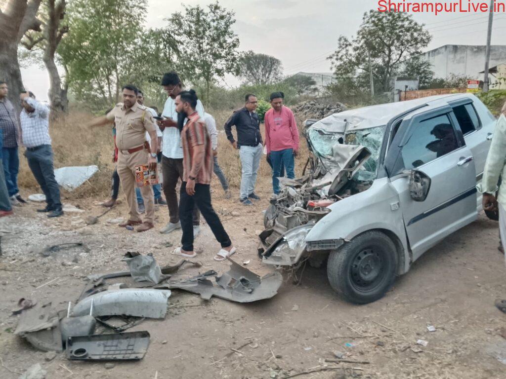 याबाबत अधिक माहिती अशी की,आज दि.२५ फेब्रुवारी २०२६ रोजी सायंकाळी 5 वाजेच्या सुमारास श्रीरामपूर शहराजवळील खंडाळा गाव परिसरात श्रीरामपूर-बाभळेश्वर रोडवर स्विफ्ट कारची ओव्हरटेक करत असताना समोरून येणाऱ्या ट्रकला धडक बसली.ही धडक इतकी भीषण होती की कारच्या समोरील भागाचा अक्षरशः चुराडा झाला आहे.जखमींना आजूबाजूच्या लोकांनी तातडीने साखर कामगार रुग्णालयात दाखल केले. तेथून त्यांना लोणी येथील प्रवरा रुग्णालयात हलविण्यात आले.या अपघातात श्रीरामपूर शहरातील प्रसिद्ध संतोष वडापाव चे मालक श्री.चव्हाण यांच्या परिवारातील सहा सदस्यांचा दुर्दैवी मृत्यू झाला.या दूर्दैवी घटनेमुळे चव्हाण परिवारासह नातेवाईक व मित्र परिवार यांच्यामध्ये शोककळा पसरली आहे.