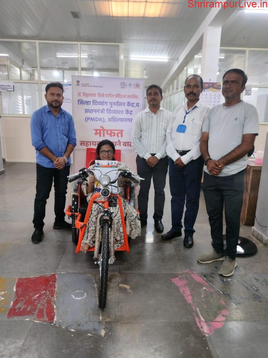 डॉ.विठ्ठलराव विखे पाटील फाउंडेशन संचलित जिल्हा दिव्यांग पुनर्वसन केंद्र व प्रधानमंत्री दिव्याशा केंद्र अहिल्यानगर यांच्यामार्फत आणि माजी खासदार डॉ.सुजय विखे यांच्या विशेष सहकार्यामुळे आज श्रीरामपूर येथील कु.दर्शना पापडीवाल या दिव्यांग व्यक्तीला व्यवसाय व नोकरी करिता बॅटरीवरील सायकल प्रदान करण्यात आली.श्रीरामपूर मूकबधिर विद्यालयाचे वैद्यकीय सामाजिक अधिकारी संजय साळवे यांच्याकडे श्री.महेश दिघे यांनी कु.दर्शना पापडीवाल हिला बॅटरीवरील सायकल देण्याची विनंती केली.त्यानुसार श्री. साळवे यांनी जिल्हा दिव्यांग पुनर्वसन केंद्राचे प्रकल्प समन्वयक डॉ. दीपक अनाप यांचेशी संपर्क साधून तातडीने बॅटरीवरील सायकल देण्याचे नियोजन करण्यात आले.कु.दर्शना पापडीवाल हिला संजय साळवे यांनी खाजगी नोकरी लावून दिलेली आहे. तिचा सामाजिक,आर्थिक पुनर्वसन करण्याचे मोलाचं काम त्यांनी केलेले आहे. नोकरीला जाण्यासाठी यापूर्वी साधी सायकल देण्यात आली होती. परंतु साधी सायकल वापरण्यास अडचण निर्माण होत होती आणि दर्शना 80 टक्के दिव्यांग असल्याकारणाने तिला बॅटरीवरची सायकलची नितांत गरज होती ती मागणी डॉ.विखेपाटील फाऊंडेशनने तातडीने मान्य केली आणि आज रोजी तिला तिच्या सामाजिक पुनर्वसनासाठी बॅटरी वरील सायकल एक जीवनदाईनी ठरली आहे.आज कार्यालय बंद असताना देखील जिल्हा दिव्यांग पुनर्वसन केंद्राचे प्रकल्प समन्वयक मा.डॉ.दीपक अनाप यांनी विनविलंब पूर्तता केली.सदर उपक्रमासाठी जिल्हा दिव्यांग पुनर्वसन केंद्राचे प्रकल्प संचालक डॉ.अभिजीत दिवटे,अपंग सामाजिक विकास संस्थेच्या सचिव वर्षा गायकवाड, विशाल पापडीवाल जिल्हा दिव्यांग पुनर्वसन केंद्राचे सृजन भालेराव समन्वयक डॉक्टर अभिजीत मिरेकर प्रवीण कांबळे यांचे विशेष सहकार्य लाभले.